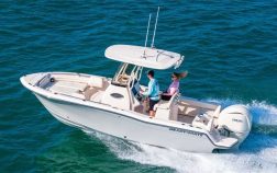 NEW, Yamaha F250hp OB, dual battery, hydraulic trim tabs, cockpit bolsters, LED lighting, rod holders, fish box, tackle tray, lockable storage, stereo, compass, cooler, swim platform, ski pylon, washdown